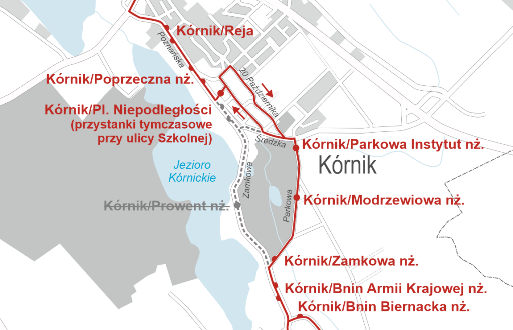 Nieczynne będą stałe przystanki Kórnik pl. Niepodległości oraz Kórnik Prowent nż.