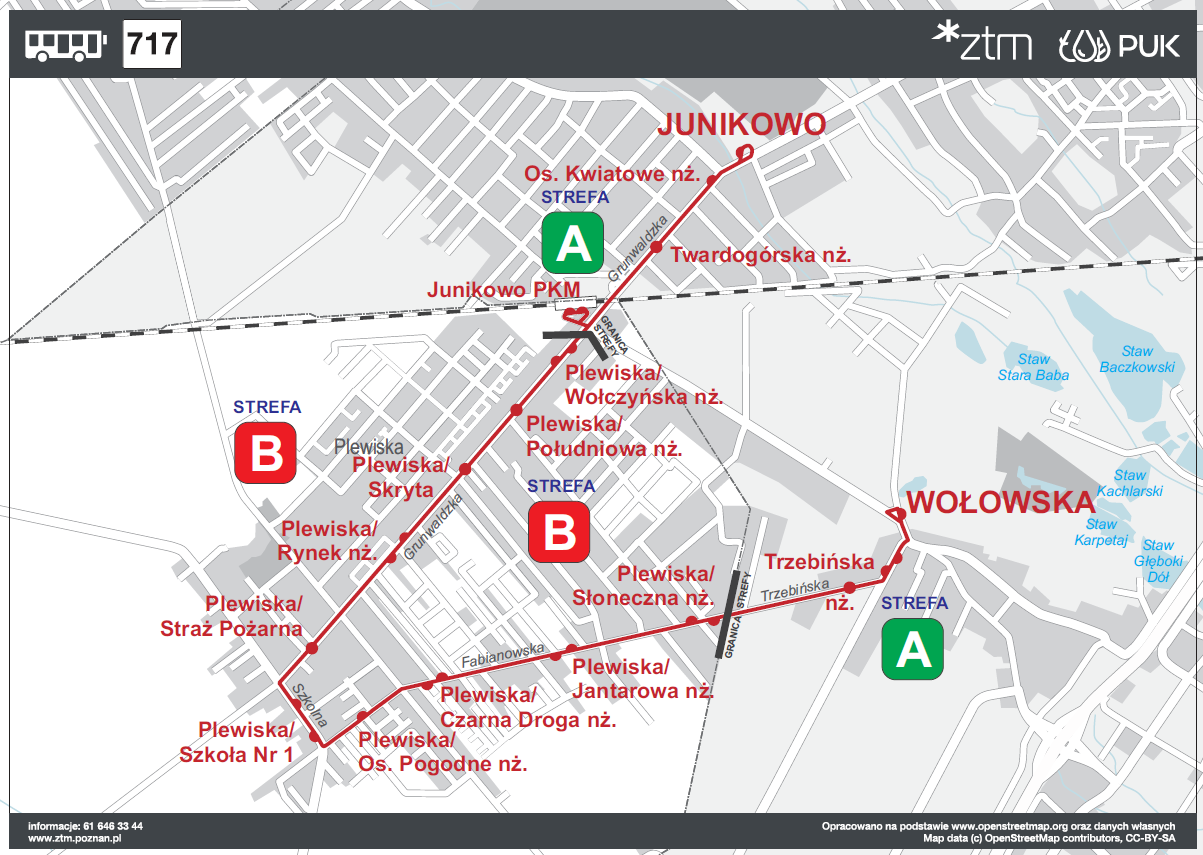 Poznań, Junikowo – Poznań, Grunwaldzka – Plewiska, Grunwaldzka, Plewiska, Szkolna, Plewiska, Fabianowska, Poznań, Fabianowska, Poznań, Trzebińska, Poznań, Sycowska, Poznań, Wołowska.