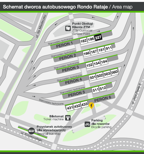 Od poniedziałku, 3 listopada, na dworcu autobusowym Rondo Rataje zostanie wprowadzona zmiana organizacji ruchu. Modyfikacja dotyczy przyporządkowania linii autobusowych do stanowisk na poszczególnych peronach. Prosimy pasażerów o zapoznanie się ze zmianami w celu dobrej orientacji na terenie dworca.
